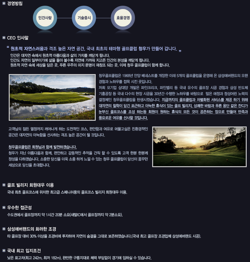 û¿ì°ñÇÁŬ·´Àº 1968³â ¾È¾ç º£³×½ºÆ®¸¦ °³ÀåÇÑ ÀÌ·¡ 5°³ÀÇ °ñÇÁŬ·´À» ¿î¿µÇØ ¿Â »ï¼º¿¡¹ö·£µåÀÇ ¿À·£ °æÇè°ú ³ëÇϿ츦 Á¢¸ñ ½ÃŲ °÷ÀÔ´Ï´Ù. ¸ð±â¾÷ÀÎ »ï´ë¾ç °³¹ßÀÌ ÆÄÀÎÅ©¸®Å©, ÆÄÀι븮 µî ±¹³» À¯¼öÀÇ °ñÇÁÀå ½Ã°ø °æÇè°ú »ï¼º ¹ÝµµÃ¼ ±âÈï°øÀå µî ±¹³» ´Ù¼öÀÇ ÇöÀå ½Ã°øÀ» 30¿©³â°£ ¼öÇàÇÑ ³ëÇϿ츦 ¹ÙÅÁÀ¸·Î ¸¹Àº ¾ÖÁ¤°ú Á¤¼º¾î¸° ³ë·ÂÀ¸·Î û¿ì°ñÇÁŬ·´À» ź»ý½ÃÄ×½À´Ï´Ù.