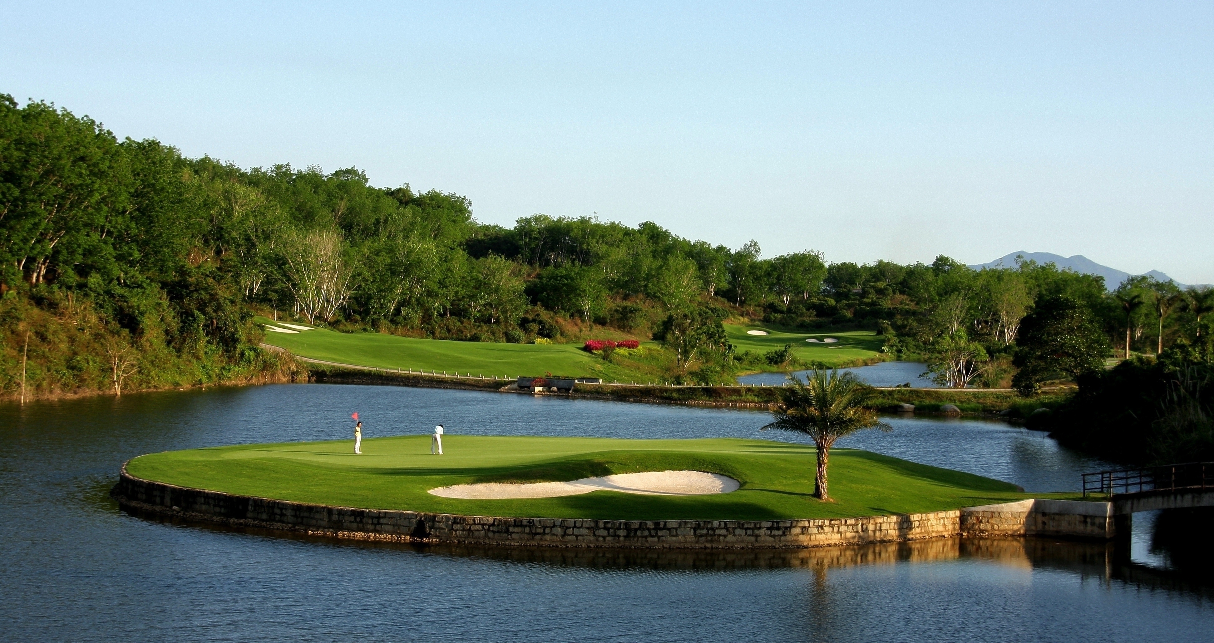 2007³â ¸» »õ·Ó°Ô ¿ÀÇÂÇÑ °÷À¸·Î °ñÇÁÀåÀº 18Ȧ 72Ÿ Ç¥ÁØ ÄÚ½º°í ¹Ì±¹ °ñÇÁ¼³°è»ç Mark Miller ¼±»ýÀÌ ¼³°èÇÏ¿´´Ù. ÃÑ ±æÀÌ´Â 7151¾ßµå°í 12°³ÀÇ Ãµ¿¬È£¼ö¿Í 59°³ÀÇ º¡Ä¿°¡ ºÐÆ÷µÇ¾îÀÖ´Ù. ÇØ³²µµ ¿ÀÁö»ê »êÀÚ¶ô¿¡ À§Ä¡ÇØ ÀÖ´Â »ê¾ÇÇü °ñÇÁÀåÀ¸·Î ÇØ¾È°¡º¸´Ù ¾à 2-3µµ Á¤µµ ¼´ÃÇÑ ±â¿ÂÀ¸·Î °ñÇÁ¸¦ Áñ±â±â¿¡ ÁÁÀº ±â¿ÂÀ» À¯ÁöÇØÁØ´Ù. »ï¾Æ ½Ã³»¿¡¼ Â÷·®À¸·Î ¾à 1½Ã°£ 30ºÐ Á¤µµ °Å¸®¿¡ À§Ä¡ÇØ ÀÖ´Ù. ÇöÀç Ä¥¼±·É °ñÇÁÀåÀº 18ȦÀ» Ãß°¡ÇÒ °èȹÀ» °¡Áö°í ÀÖÀ¸¸ç ÀÌ¹Ì °ø»çÁßÀÌ´Ù. °ñÇÁÀå ±×¸° »óÅÂ¿Í º¡Ä¿ »óÅÂ´Â ÇØ³²µµ¿¡¼µµ »óÀ§±Ç¿¡ ¼ÓÇÑ´Ù. »ê¾ÇÁö¿ªÀÇ Æ¯Â¡¿¡ ¸Â°Ô ÄÚ½º°¡ ¾î·Æ°í µµÀüÀûÀÎ ¼¦ÀÌ ÇÊ¿äÇÑ ÄÚ½º°¡ ¸¹´Ù. ÀϹÝÀûÀÎ °ñÇÁÀåÀÇ °æ¿ì Çڵ𰡠80ÀÌÁö¸¸ Ä¥¼±·ÉÀÇ °æ¿ì´Â Çڵ𰡠90À¸·Î ±×¸¸Å ÄÚ½º°¡ ½±Áö ¾Ê´Ù´Â °ÍÀ» ¸»ÇØÁÖ°í ÀÖ´Ù. 7°³ÀÇ ¹ÙÀ§°¡ Àå°üÀ» ÀÌ·é´Ù ÇÏ¿© Ä¥¼±·ÉÀ¸·Î ºÒ¸®´Â ÀÌ °÷¿¡ ±ï¾ÆÁö¸£´Â Àýº®°ú »êÀ» ¹è°æÀ¸·Î Áö¾îÁø ÀÌ °ñÇÁÀåÀº »õº® ù ƼŸÀÓÀÇ ¾È°³ ³¤ ±×¸°À» º¸´Â °ÍÀ¸·Î »óÄèÇÏ°Ô ½ÃÀÛÀ» ÇÒ ¼ö ÀÖ´Ù. ´Ù¼Ò Çѱ¹ °ñÇÁÀå°ú ºñ½ÁÇÑ Á¡ÀÌ ÀÖÁö¸¸ ¶Ç ´Ù¸¥ ¸ÀÀ» ´À³¥ ¼ö ÀÖ´Â °÷À¸·Î ¾ÆÀÏ·£µå ȦÀ» ºñ·ÔÇÏ¿© Àç¹ÌÀÖ´Â 18ȦÀÇ ÄÚ½ºµéÀÌ »ê°ú °è°î°ú ¾î·ç¾îÁ® ÀÖ´Ù. »ê¿¡ Áö¾îÁø °ñÇÁÀåÀ̶ó Æä¾î¿þÀ̰¡ Á¼°í ±×¸°ÀÇ ºü¸£±â´Â º¸Åë, Çù°îÀ¸·Î ÀÌ·ç¾îÁ®ÀÖ°í ¹°À» °Ç³Ê´Â ÄÚ½º°¡ ¸¹ÀÌ ÀÖ¾î ºñ±â³Ê¶ó¸é ¾î·Æ°Ô ´À²¸Áú ¼ö ÀÖ´Â °÷ÀÌ´Ù. ½ÇÁ¦·Î ¸¹Àº ¼Õ´ÔµéÀÌ °øÀ» ³Ê¹« ¸¹ÀÌ Àؾî¹ö·Á ±âºÐ ¾ÈÁÁ°Ô ¶ó¿îµå¸¦ ¸¶Ä¡´Â °÷À̱⵵ ÇÏÁö¸¸ µµÀü Á¤½ÅÀÇ ±Ø¿¡ ´ÞÇÏ´Â ¸ÀÀº ³ª¸§ ¸Å·ÂÀÌ ÀÖ´Â °÷ÀÌ´Ù.